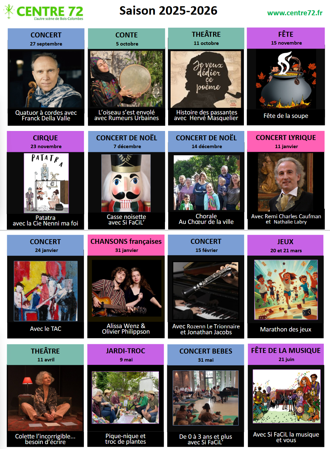 Tous nos spectacles, concerts et événements sont en entrée libre.